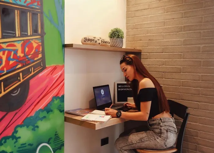 The 1-room Stadio Serenity Rosa Negra Aparta-Suite Medellin is situated in the Laureles - Estadio district, only 6 minutes' walk from the Obelisco Commercial Center.